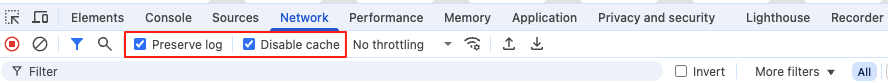 • Check the box next to Preserve log to keep the recorded data even after you reload the page.